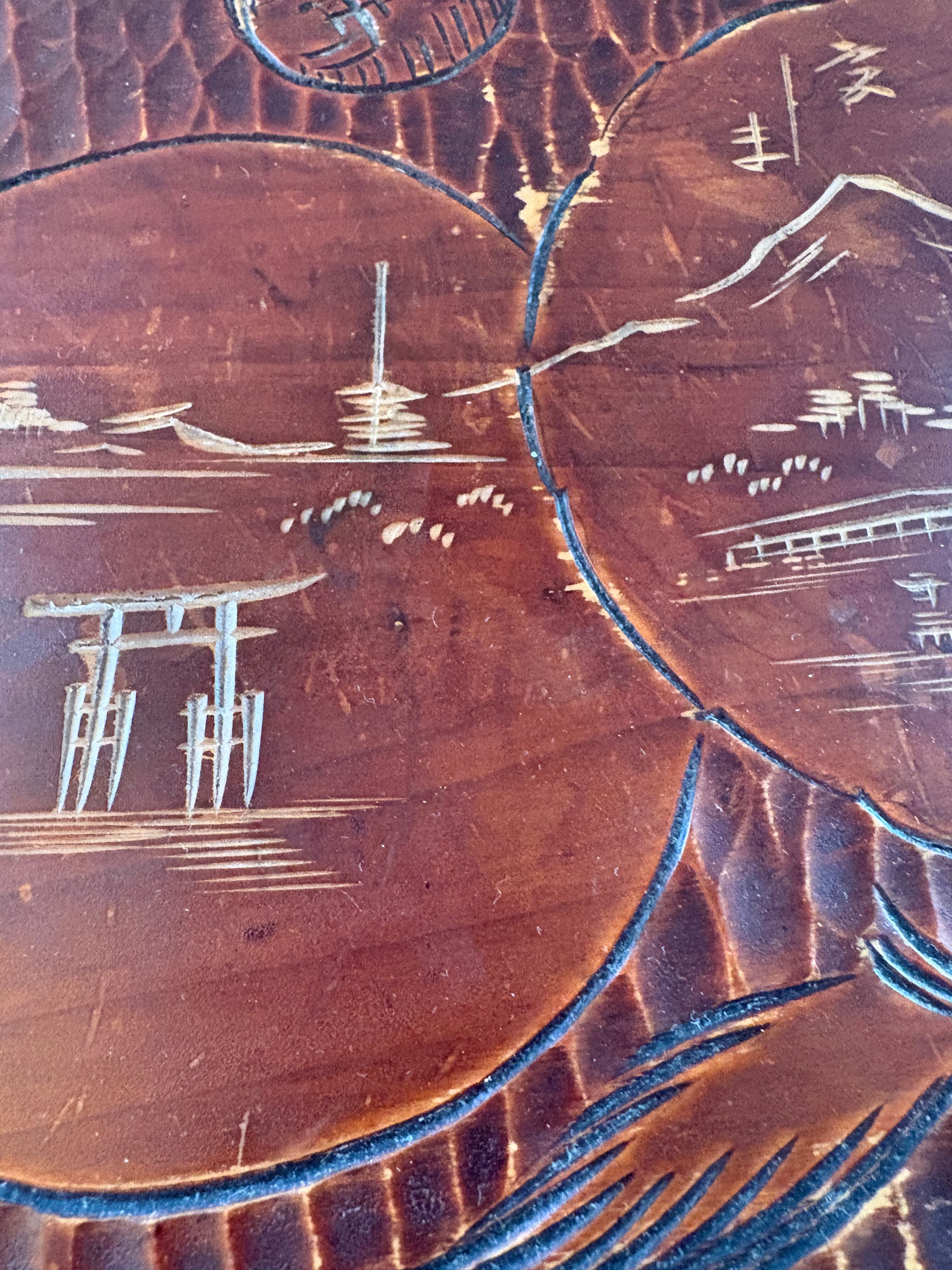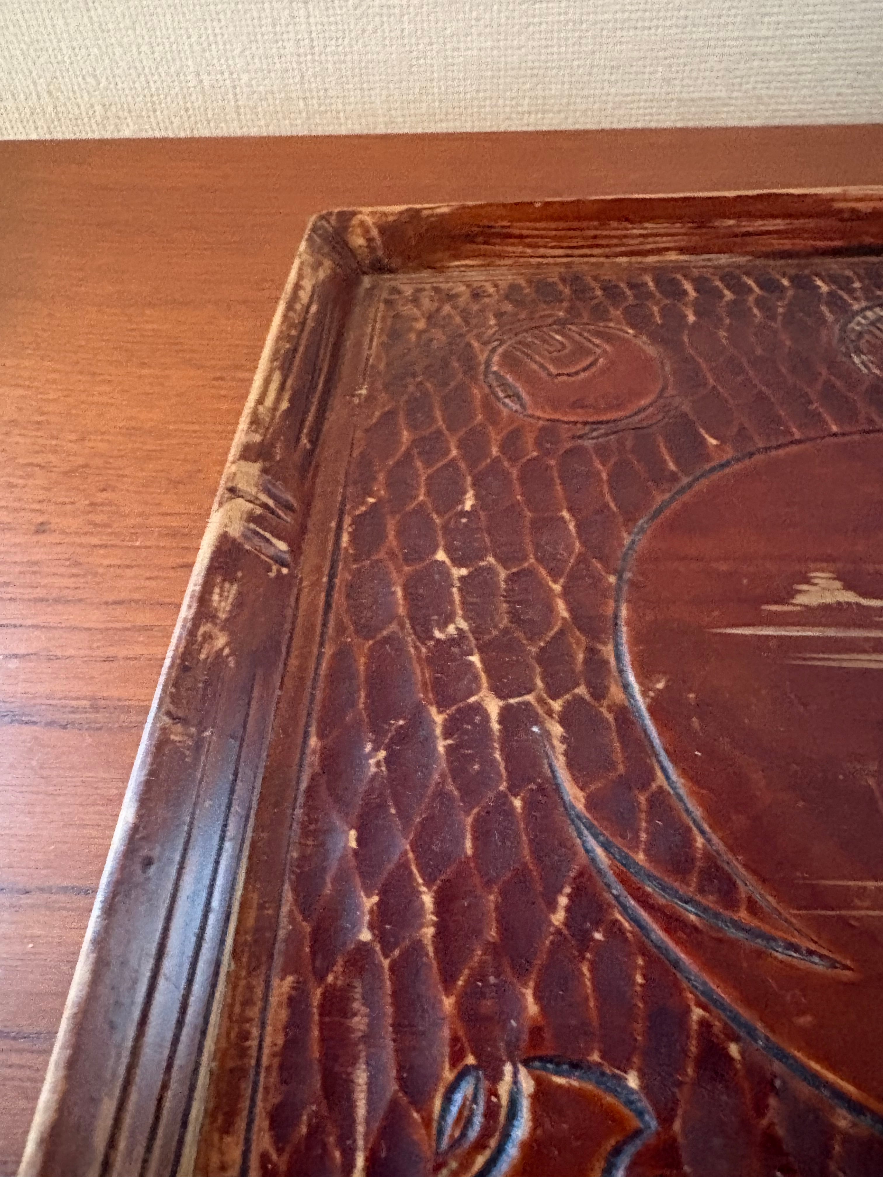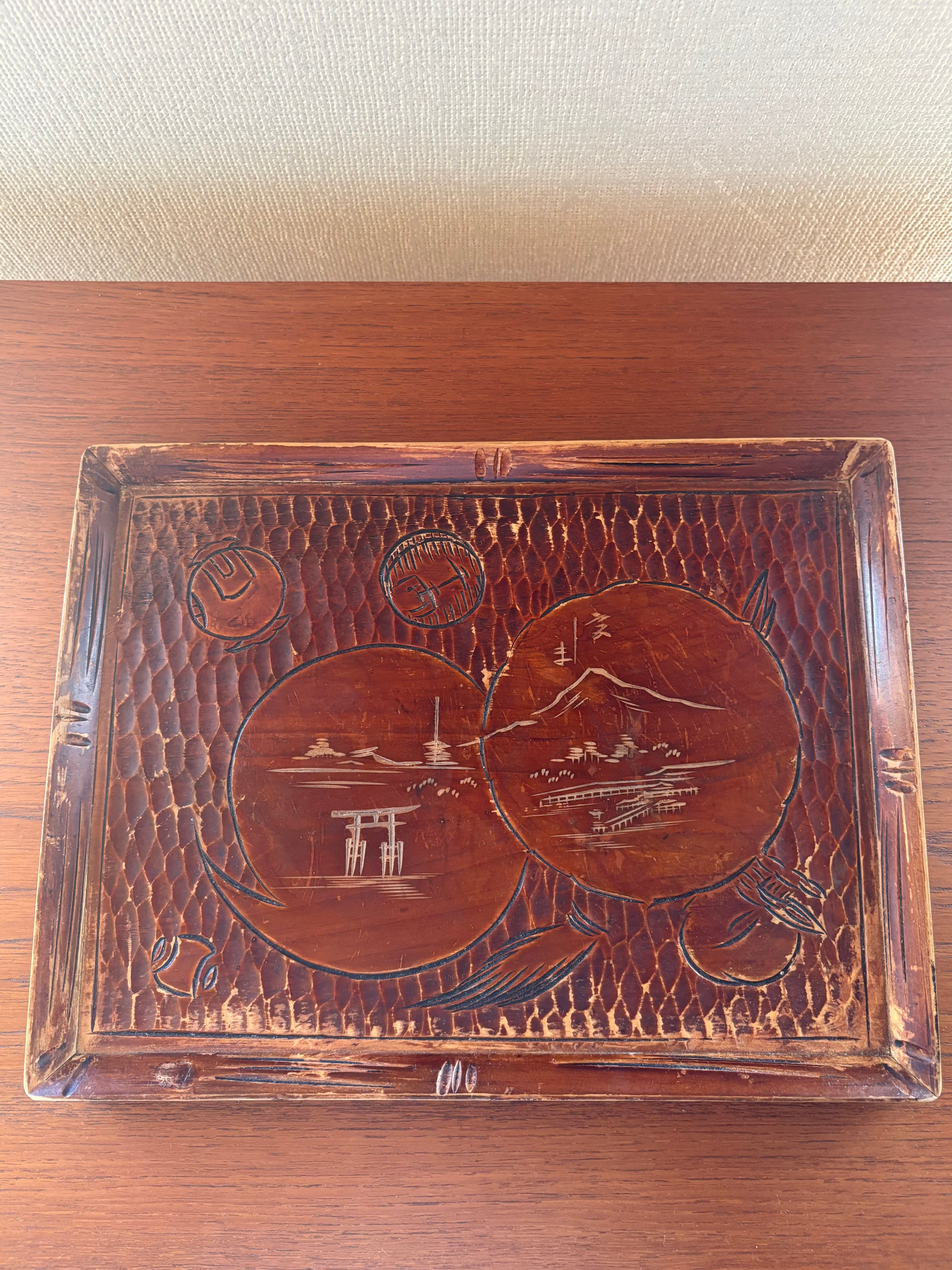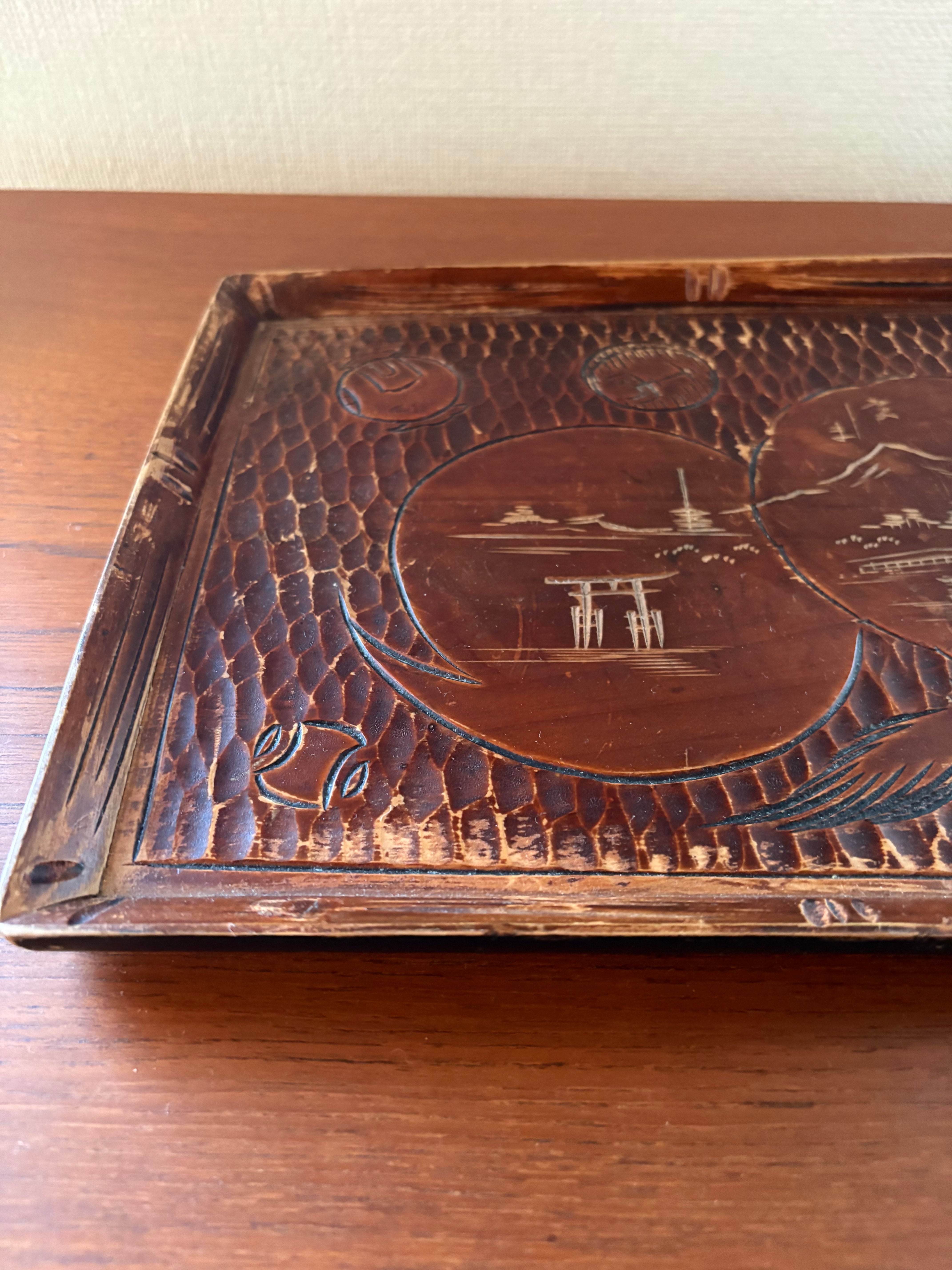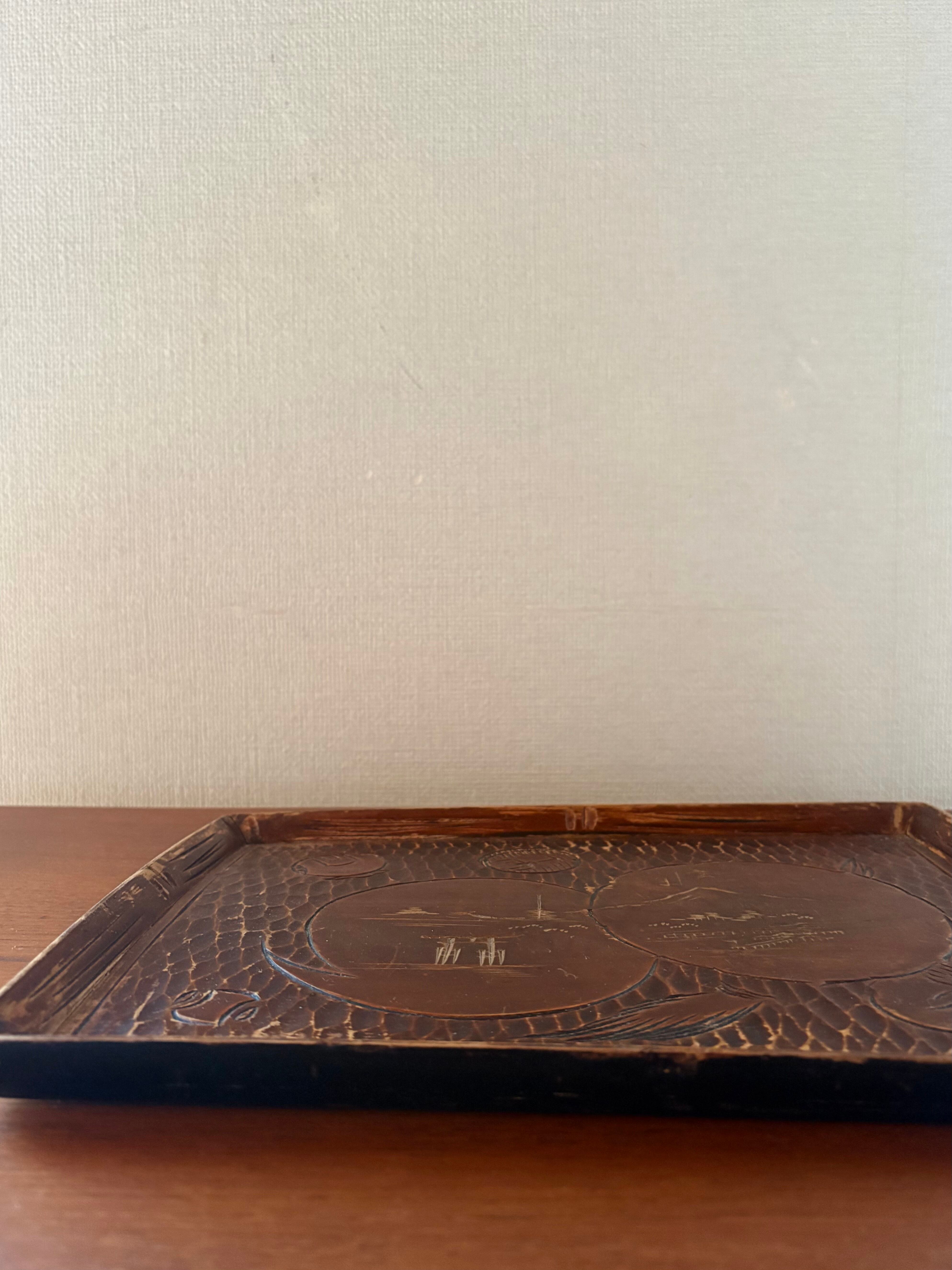 古い宮島彫のお盆です。