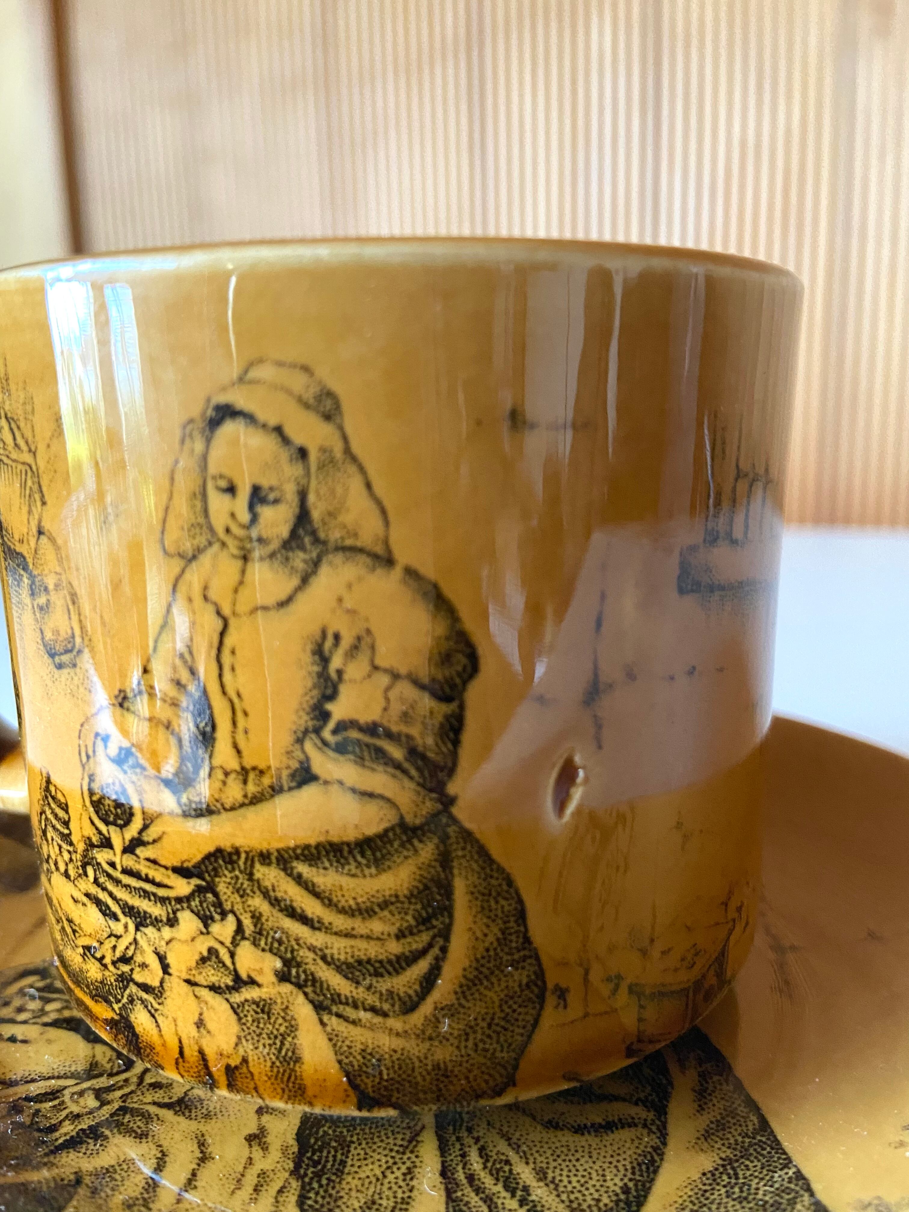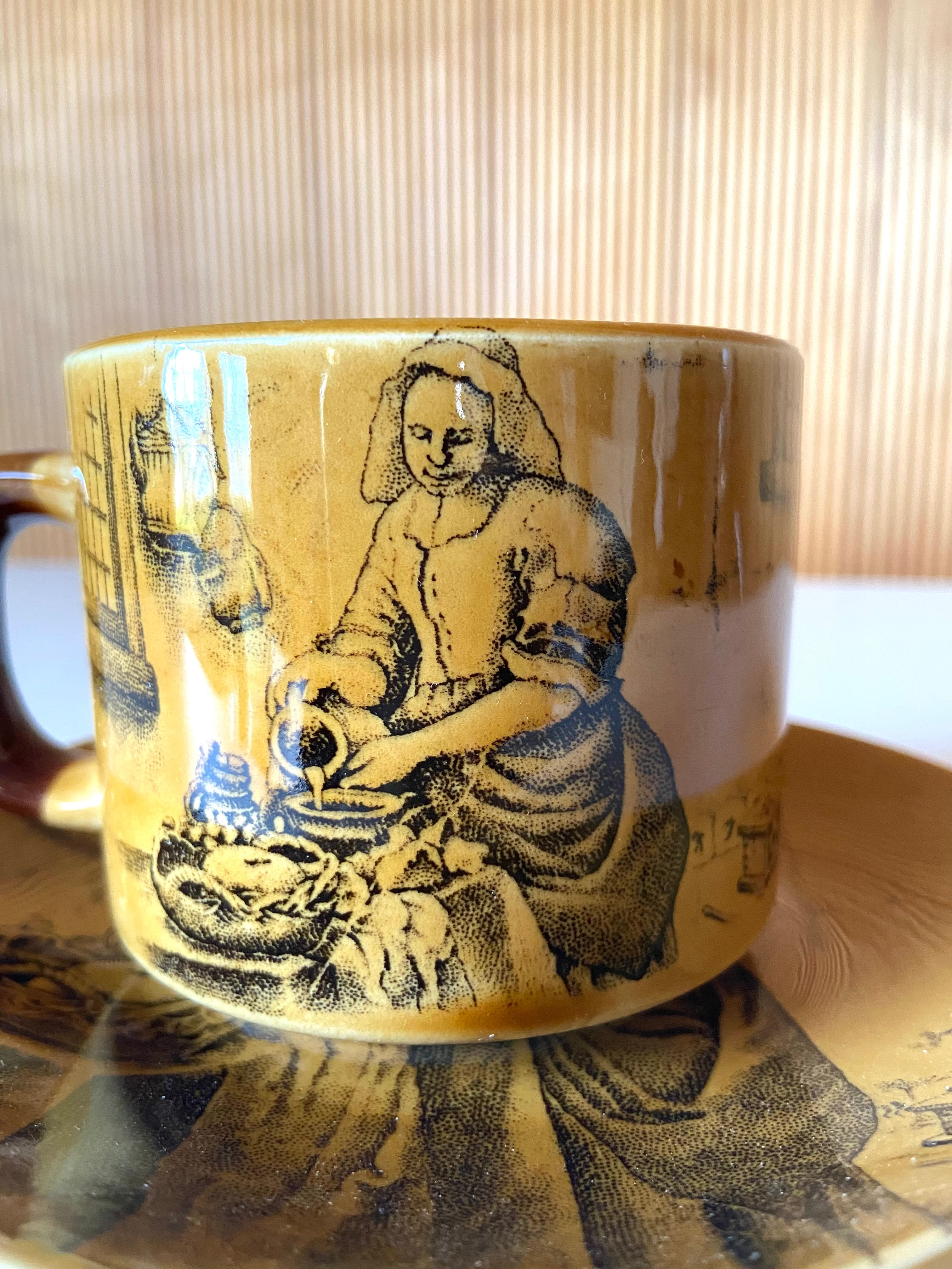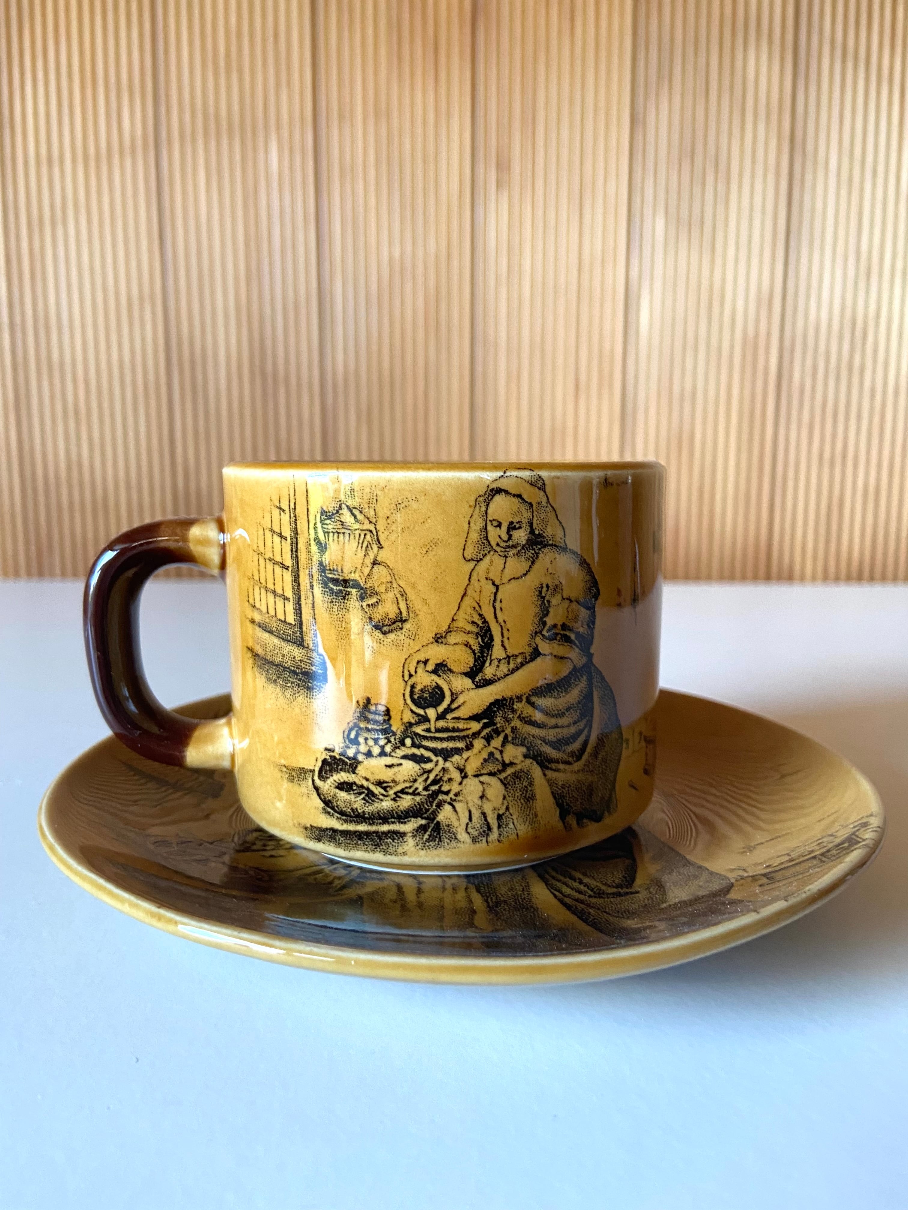 飴色のカップ&ソーサー(牛乳を注ぐ女)