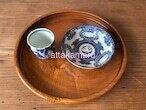 欅の丸盆になます皿、湯飲みの3点セットです。