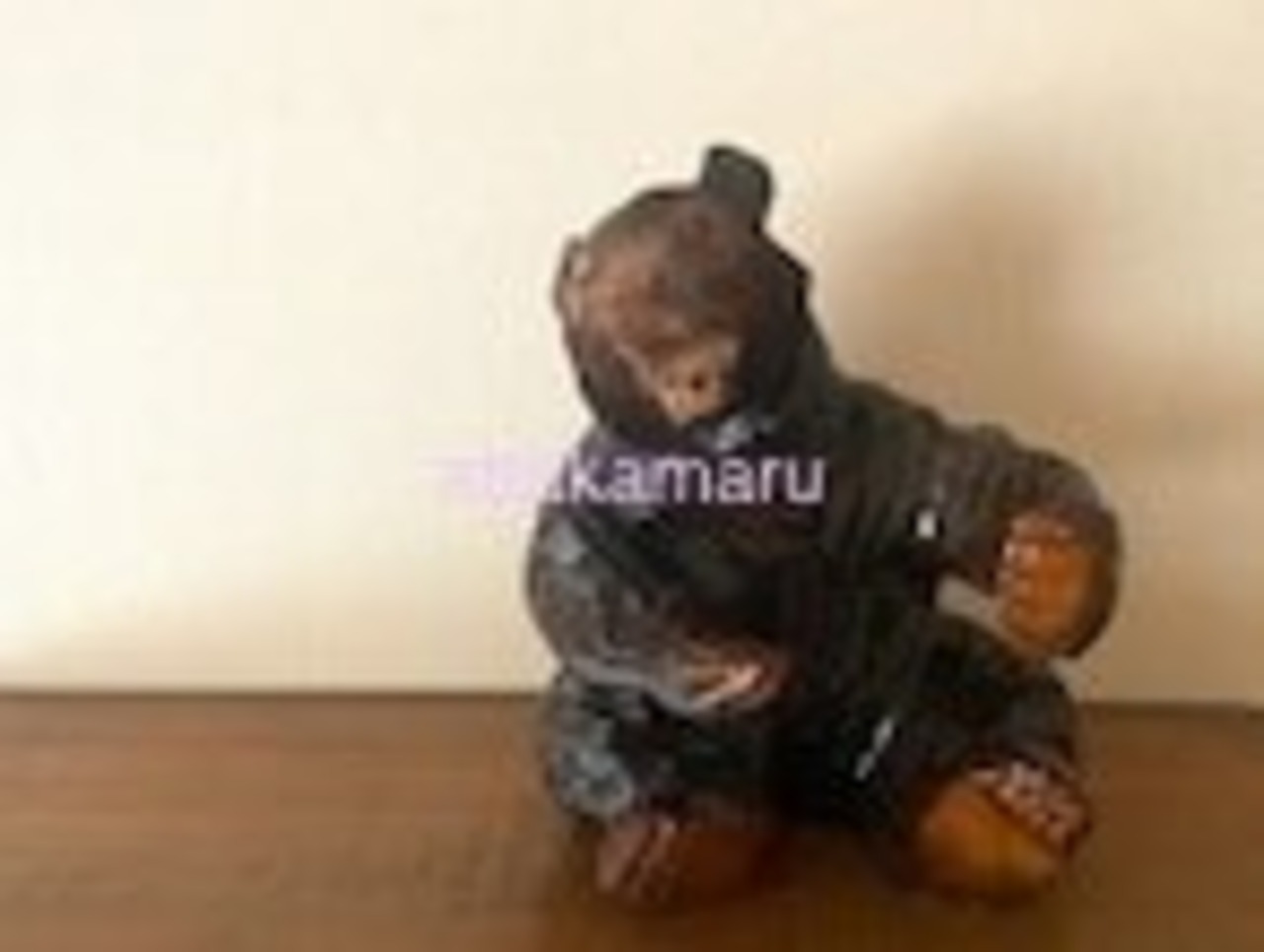 一升瓶を抱えていたと思われる木彫りの熊です。