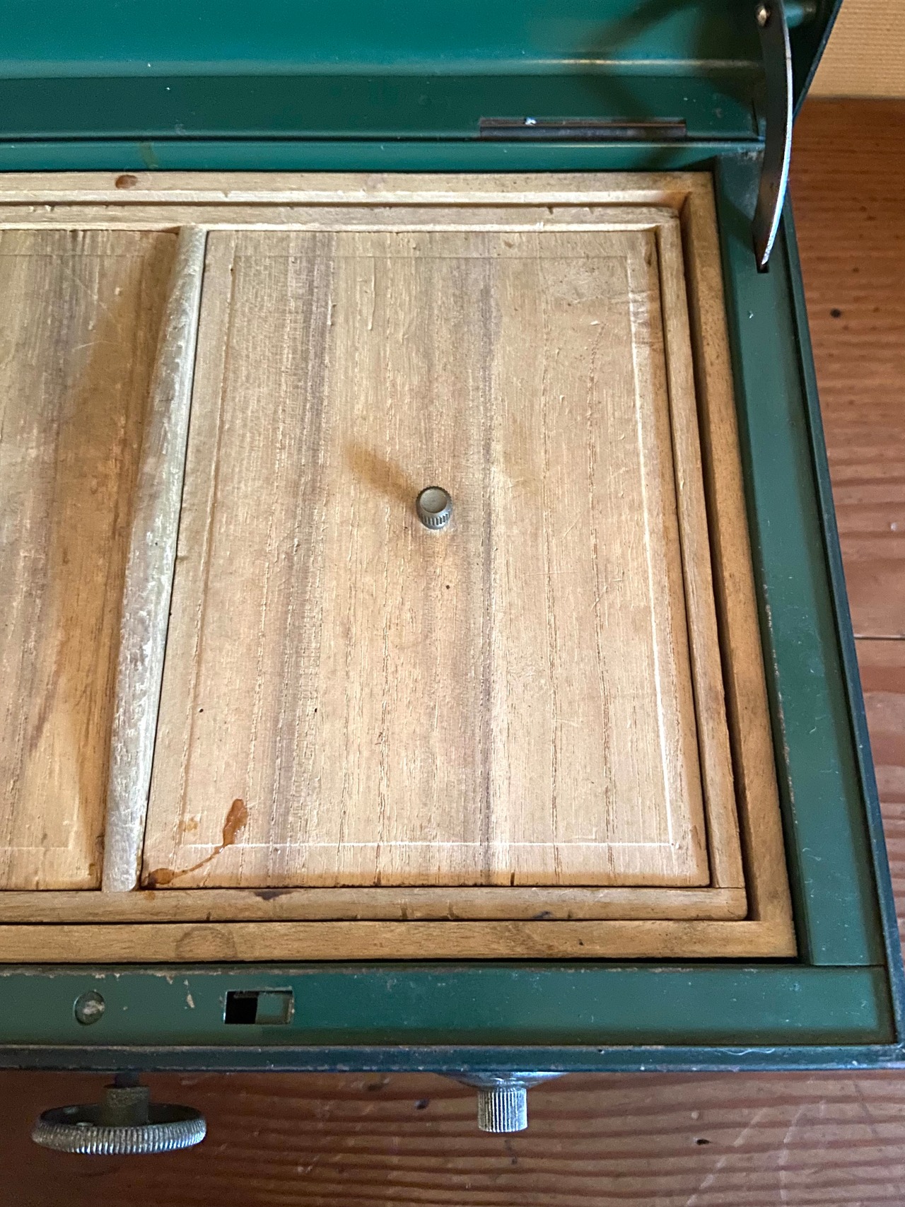 真ん中のダイヤルを回すと蓋が開きます。